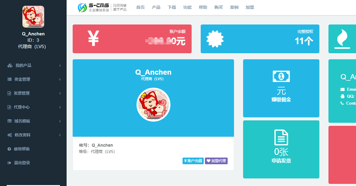 1.访问https://www.s-cms.cn/member/,进入会员中心
