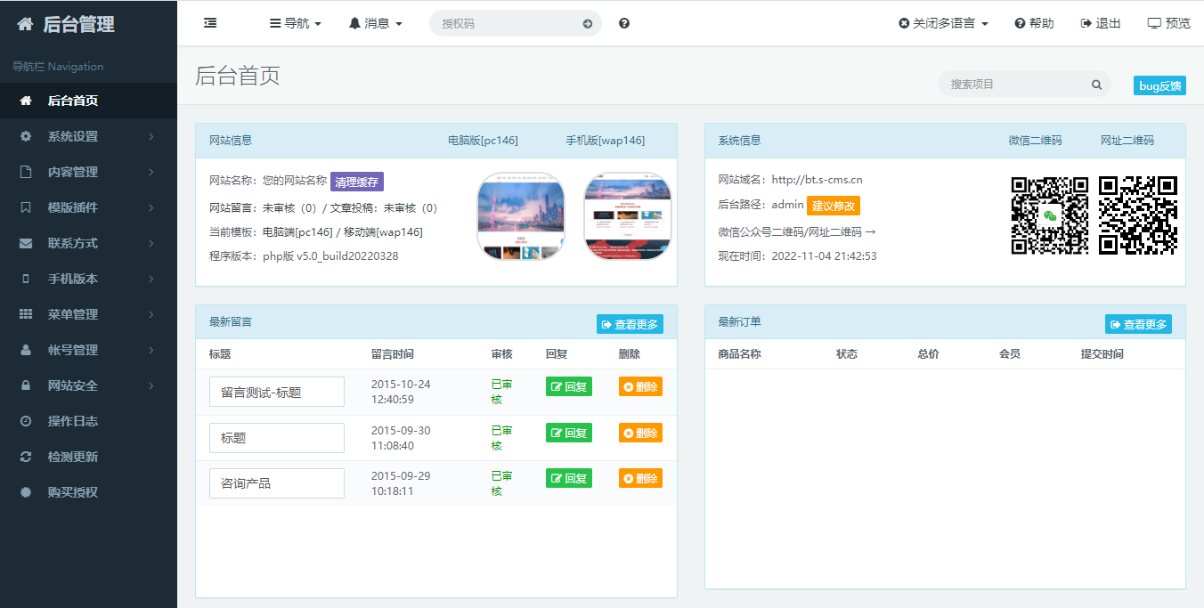 我们直接访问 http://你的域名/admin,即可进入后台。默认帐号admin 默认密码admin888